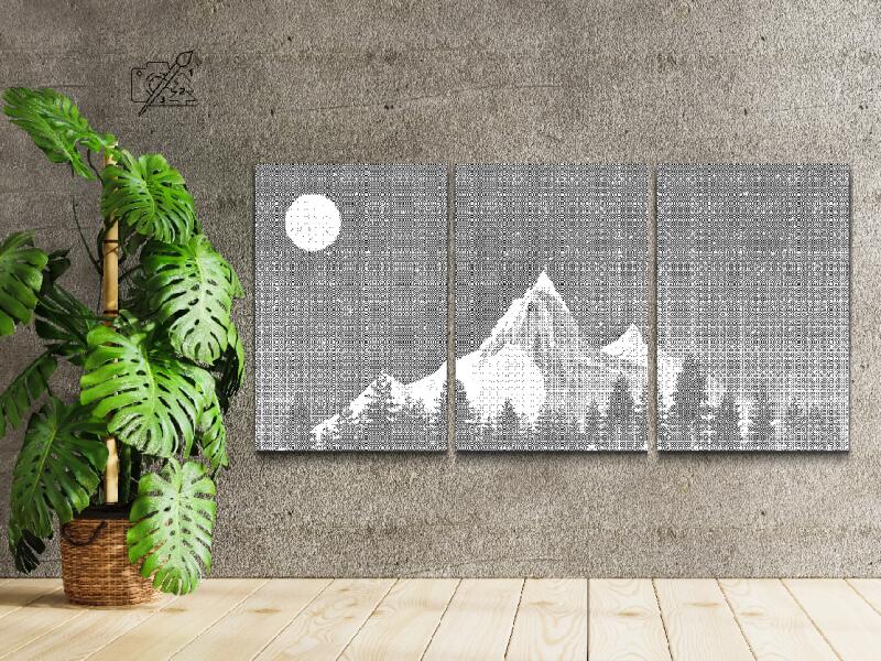 PontPöttyöző - Hegyek éjjel (3 db-os készlet) Méret: 40x60cm (3db), Keretezés: Kartonlemezen, Szín: Piros