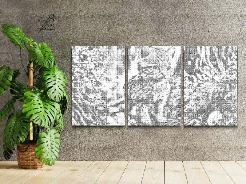 PontPöttyöző - Kóbor cica az erdőben (3 db-os készlet) Méret: 30x40cm (3db), Keretezés: Keret nélkül (csak a vászon), Szín: Kék