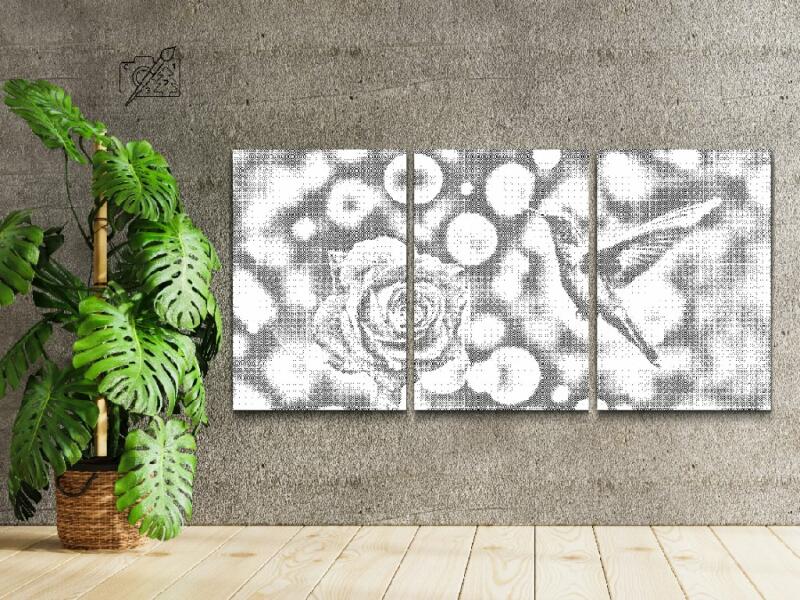 PontPöttyöző - Kolibri és rózsa (3 db-os készlet) Méret: 40x60cm (3db), Keretezés: Műanyagtáblával, Szín: Kék