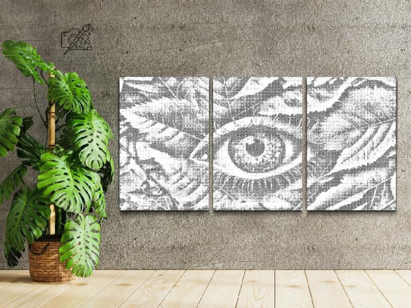 PontPöttyöző - Levelek közé rejtett szem (3 db-os készlet) Méret: 40x60cm (3db), Keretezés: Kartonlemezen, Szín: Kék