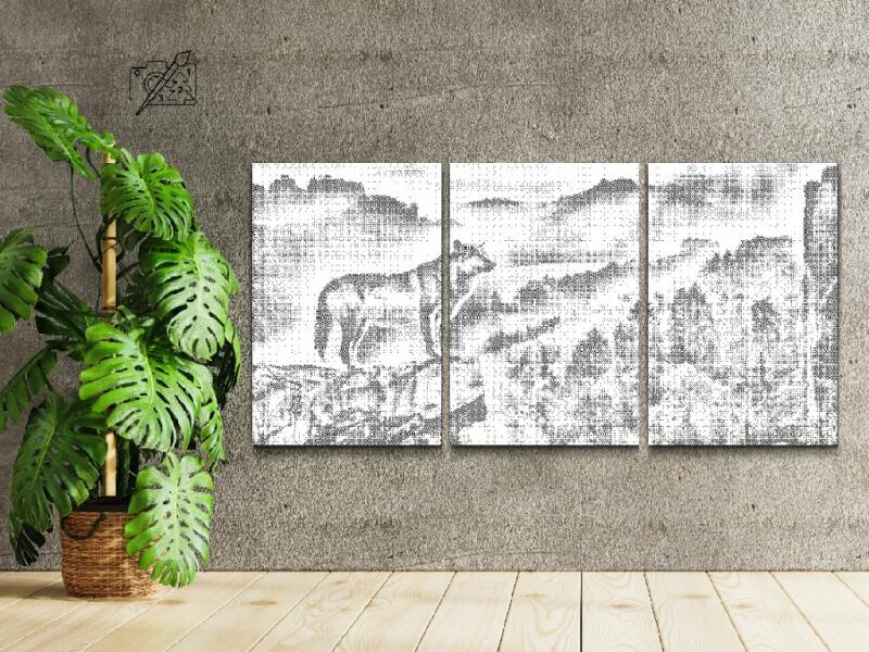 PontPöttyöző - Magányos farkas (3 db-os készlet) Méret: 30x40cm (3db), Keretezés: Kartonlemezen, Szín: Fekete