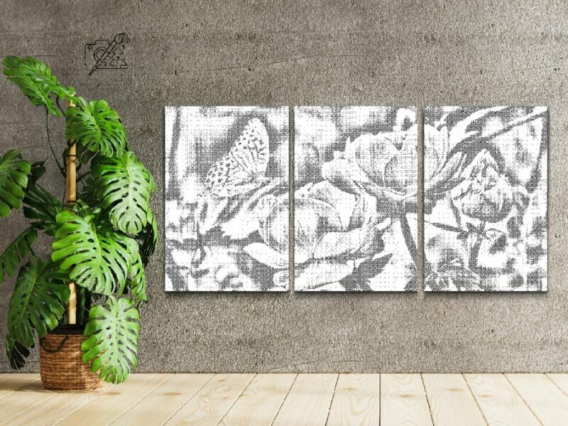 PontPöttyöző - Pillangó virágon (3 db-os készlet) Méret: 40x60cm (3db), Keretezés: Keret nélkül (csak a vászon), Szín: Zöld