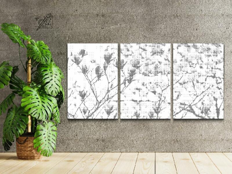 PontPöttyöző - Virágzó liliomfa (3 db-os készlet) Méret: 30x40cm (3db), Keretezés: Kartonlemezen, Szín: Piros