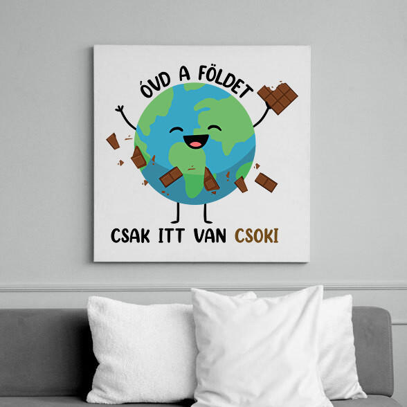 printfashion Óvd a Földet - csak itt van csoki - Vászonkép - Fehér (7325681)