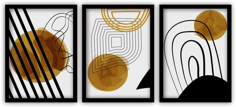 Vigyél egy kis kifinomultságot és modern stílust otthonodba a Vavien Artwork márka készletével! 3 db képet tartalmaz, melyek elegáns, fekete fakeretbe vannak helyezve. Motívumában mindegyik egyedi, de egymással harmonizál, és lenyűgöző összjátékot hoz létre .