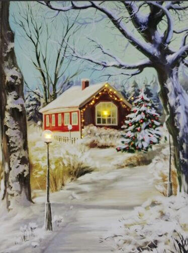 Világítós falikép Világító ledes falikép piros házikó 30 cm X 40 cm