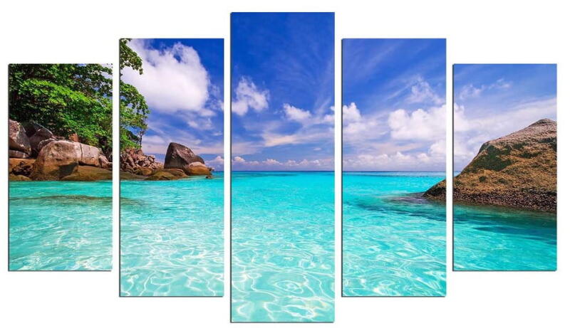 A víz látványa megnyugtat, ezért ezt a képek a hálószobába ajánljuk elsősorban. Azonban olyan más helyiségekbe is alkalmas, melyekben a pihenés vagy a koncentrálás, tanulás kap főszerepet. Az egyes képek mérete: 20 x 60 cm (1x) 20 x 50 cm (2x) 20 x 40 cm (2x)
